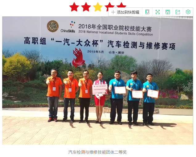 全国职业院校高职组汽车检测与维修技能大赛团体二等奖;