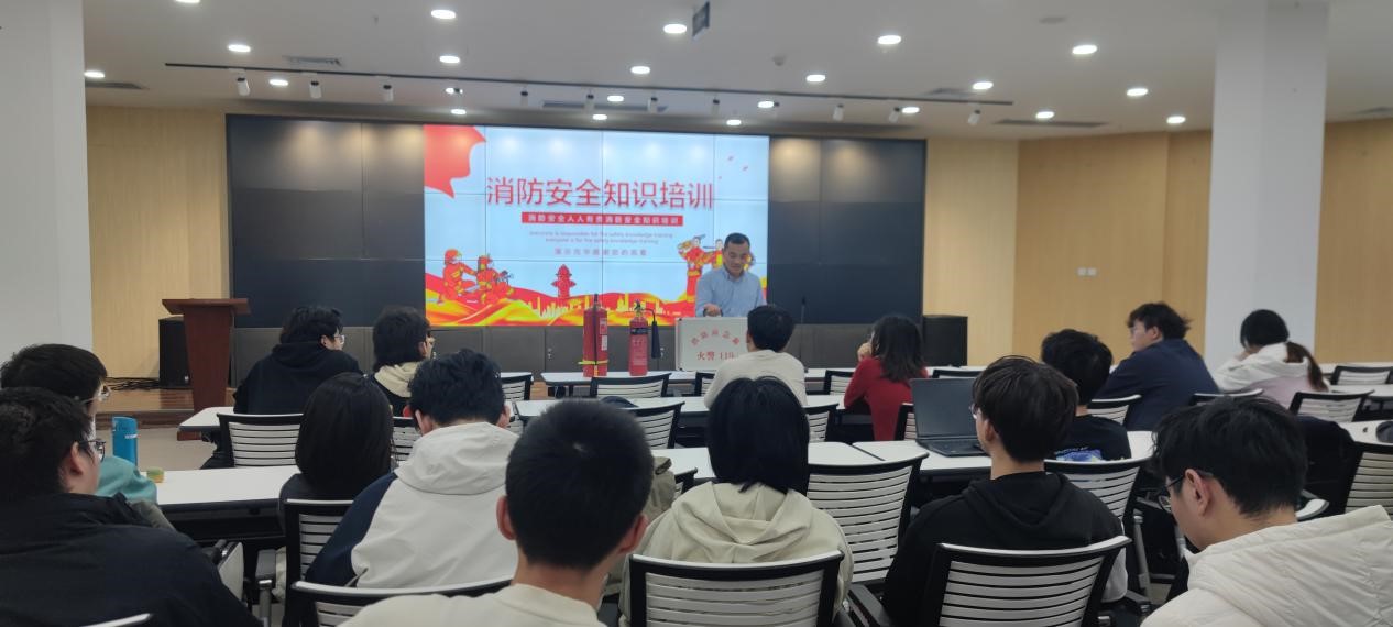 谭本新讲解了基地消防知识和消防安全注意事项,并给详细介绍了基地内各类消防设施、设备的使用方法。讲座氛围活泼而热烈,与会学生积极提问互动,并进行实践操作。