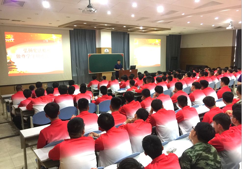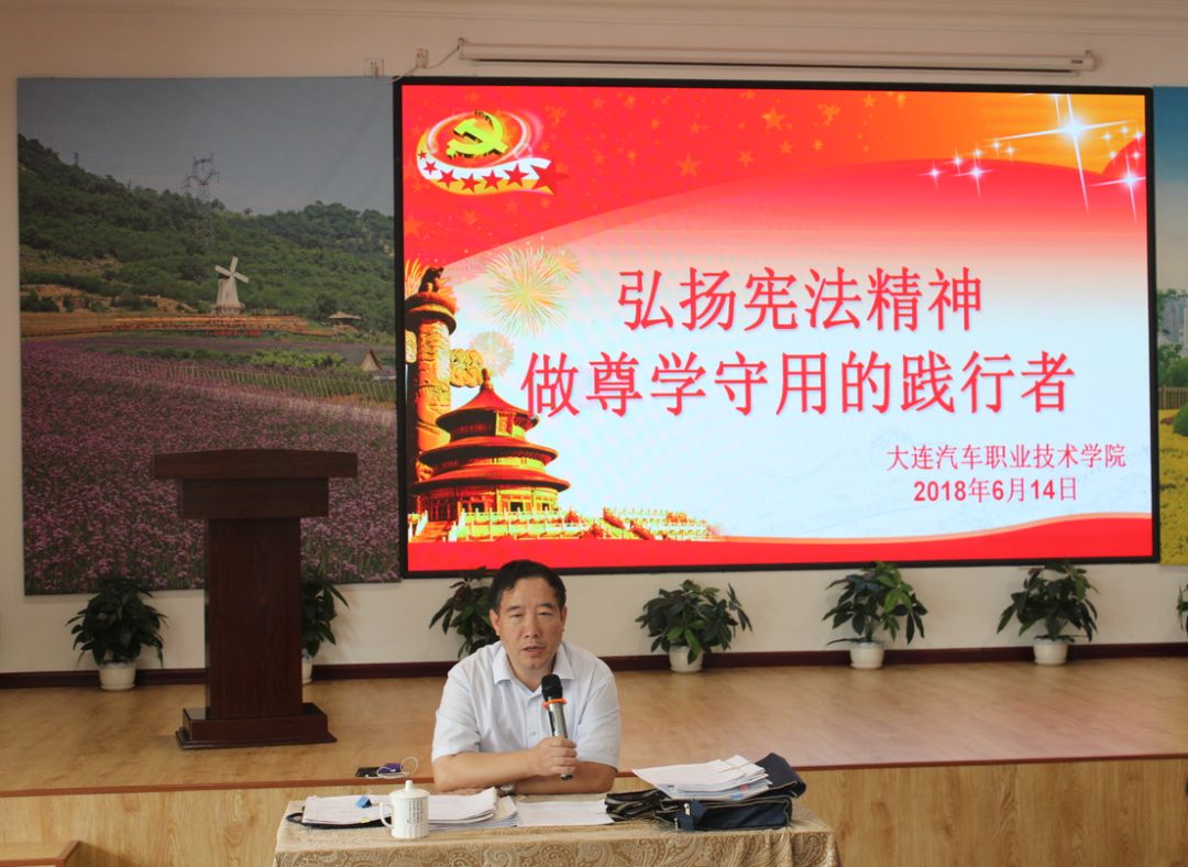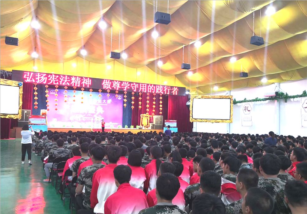 大力弘扬宪法精神,不断增强人民群众宪法意识,使宪法精神深入人心,以宪法精神凝心聚力,努力使全体师生充分尊崇宪法、学习宪法、遵守宪法、维护宪法、运用宪法,坚定不移地走中国特色社会主义法治道路。