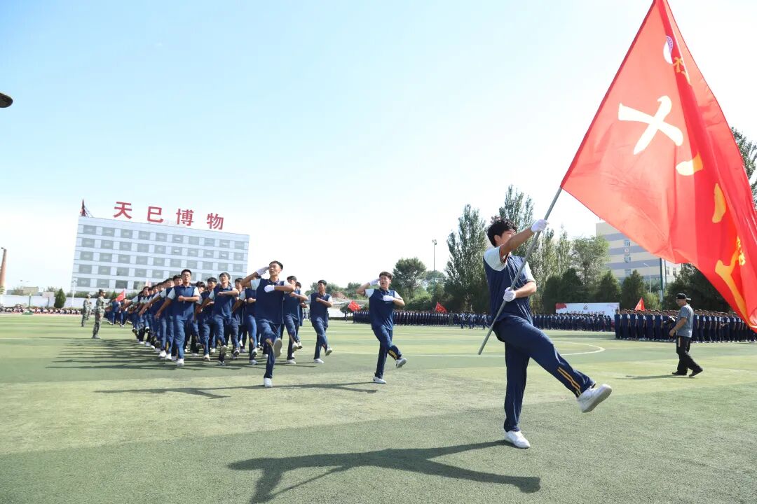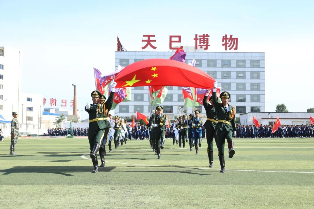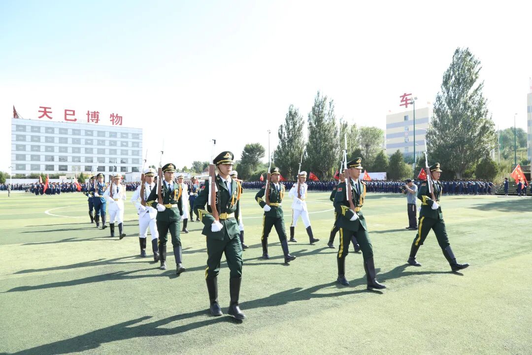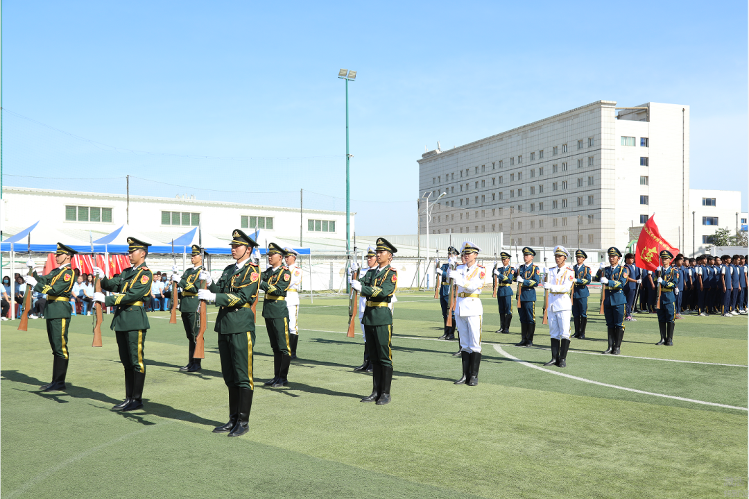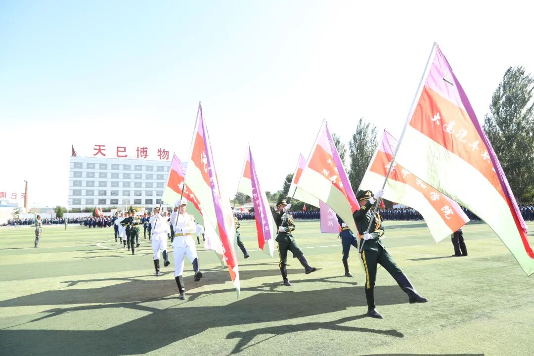 军姿育桃李,同心映日红