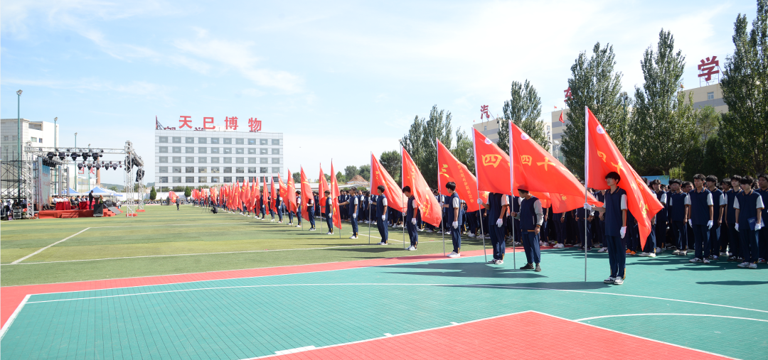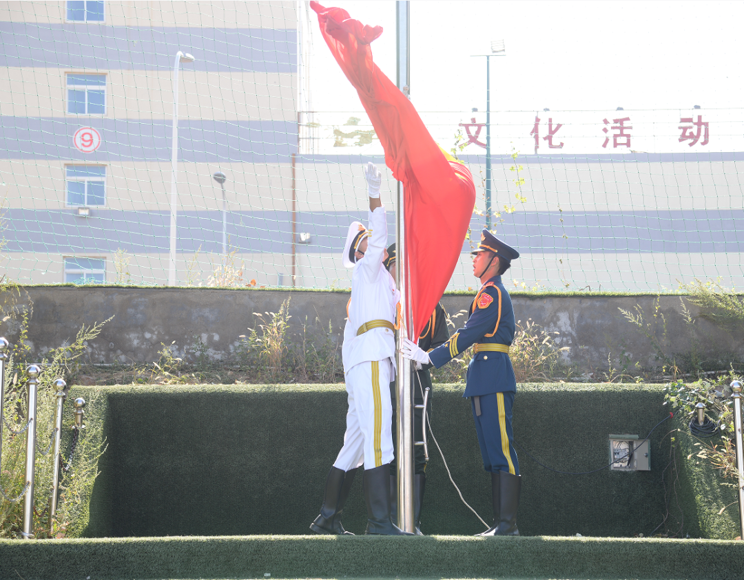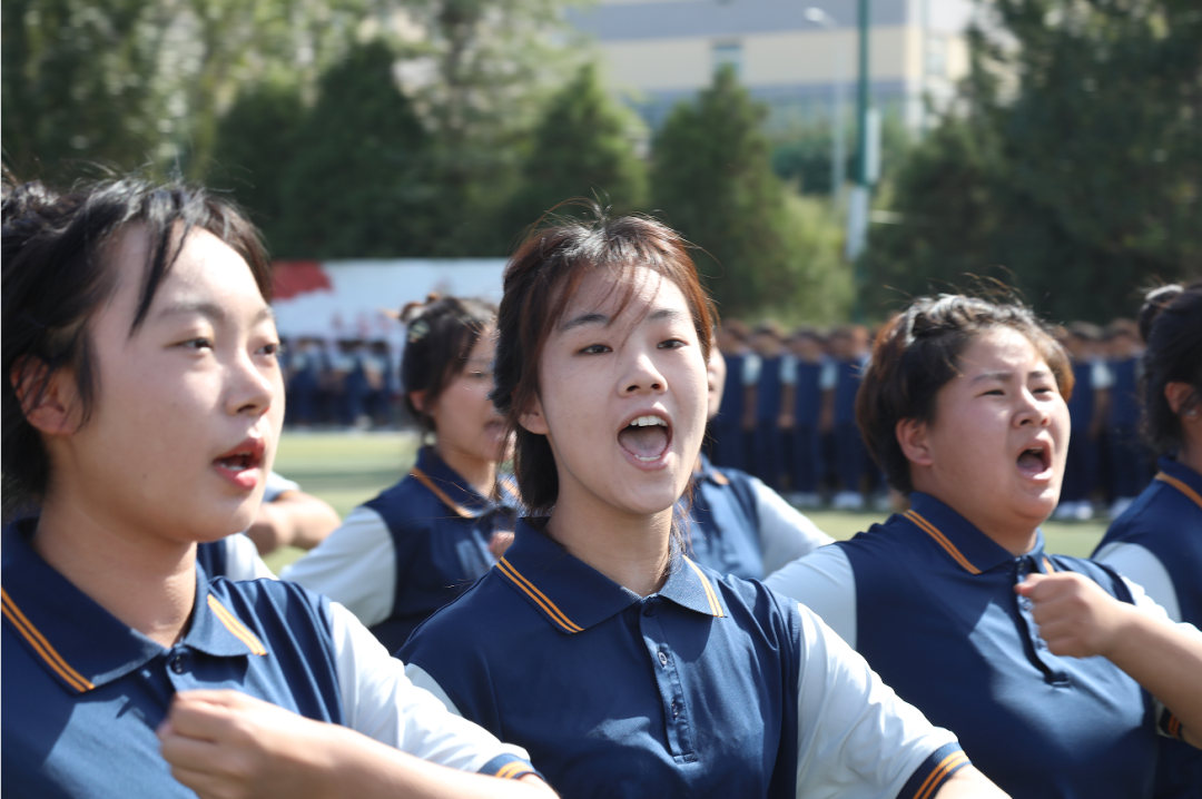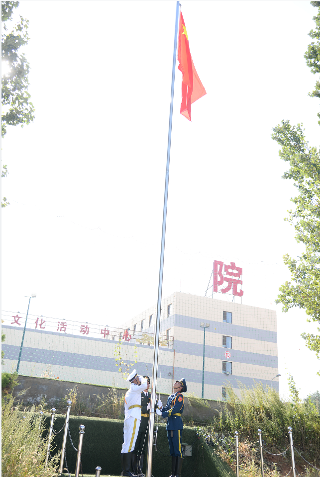当雄壮的国歌在校园奏响,与会人员全体肃立,挺直脊梁,跟着乐曲一起高唱国歌。