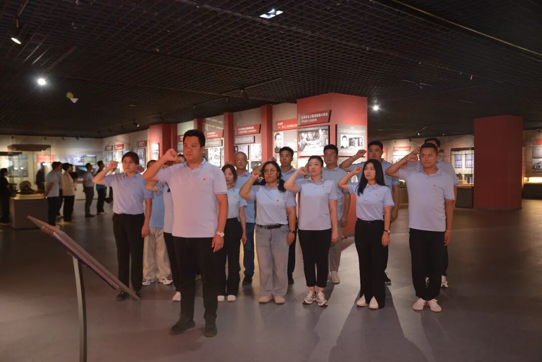 主题场馆里,全体党员面向党旗,庄严重温入党誓词。这一刻,我们心潮澎湃,感受到作为一名党员的荣耀和责任,进一步增强了党性意识,激发了爱国热情,凝聚了奋进力量。