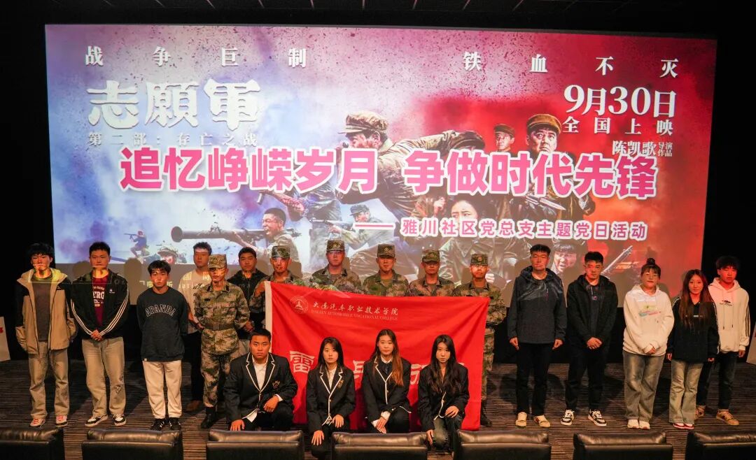 10月9日,学院团委联合龙王塘街道雅川社区共同组织师生观看影片《志愿军 第二部:存亡之战》,团委书记于凌仪和辅导员邵奇带领来自学生会、优秀团支书、国旗班的24名学生代表参加。
