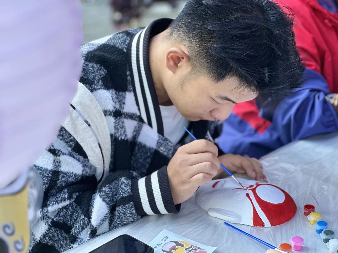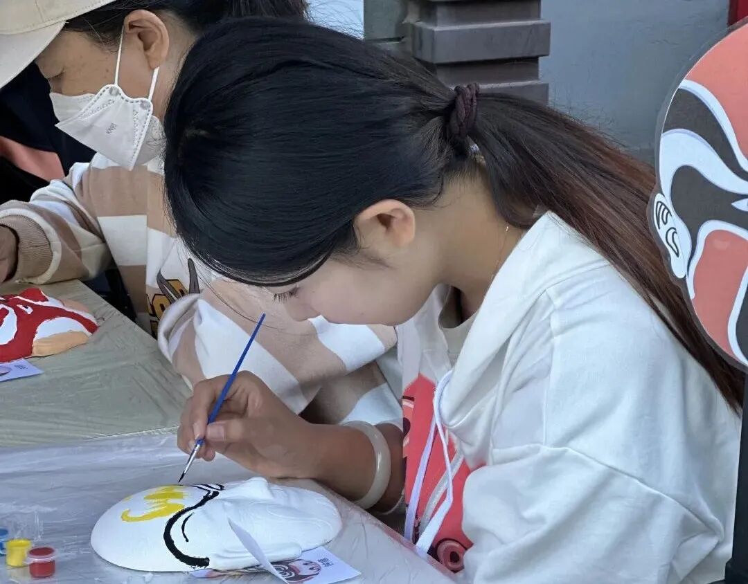 坊主和志愿者现场科普京剧脸谱文化内涵、脸谱色彩及脸谱绘画,以及现场绘制色彩鲜艳、图案各异的脸谱,让同学们进一步领略中华优秀传统文化的无穷魅力。