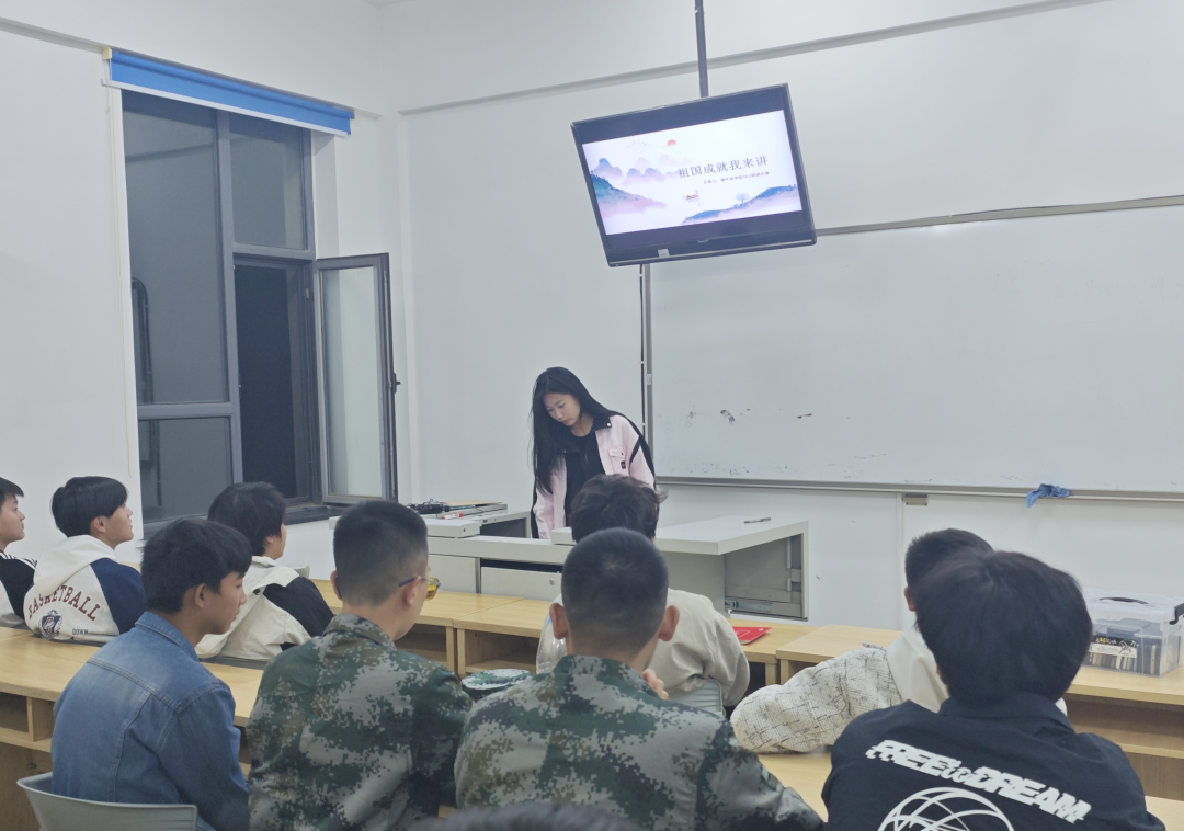 为了让同学们深刻了解新中国成立以来在政治、经济、文化、科技、军事等方面取得的成就,明确大学生的学习目标以及青春使命,24级各班团支部书记于10月10日组织各班开展“祖国成就我来讲”主题团日活动,讴歌了祖国的辉煌成就,增强了师生民族自豪感。
