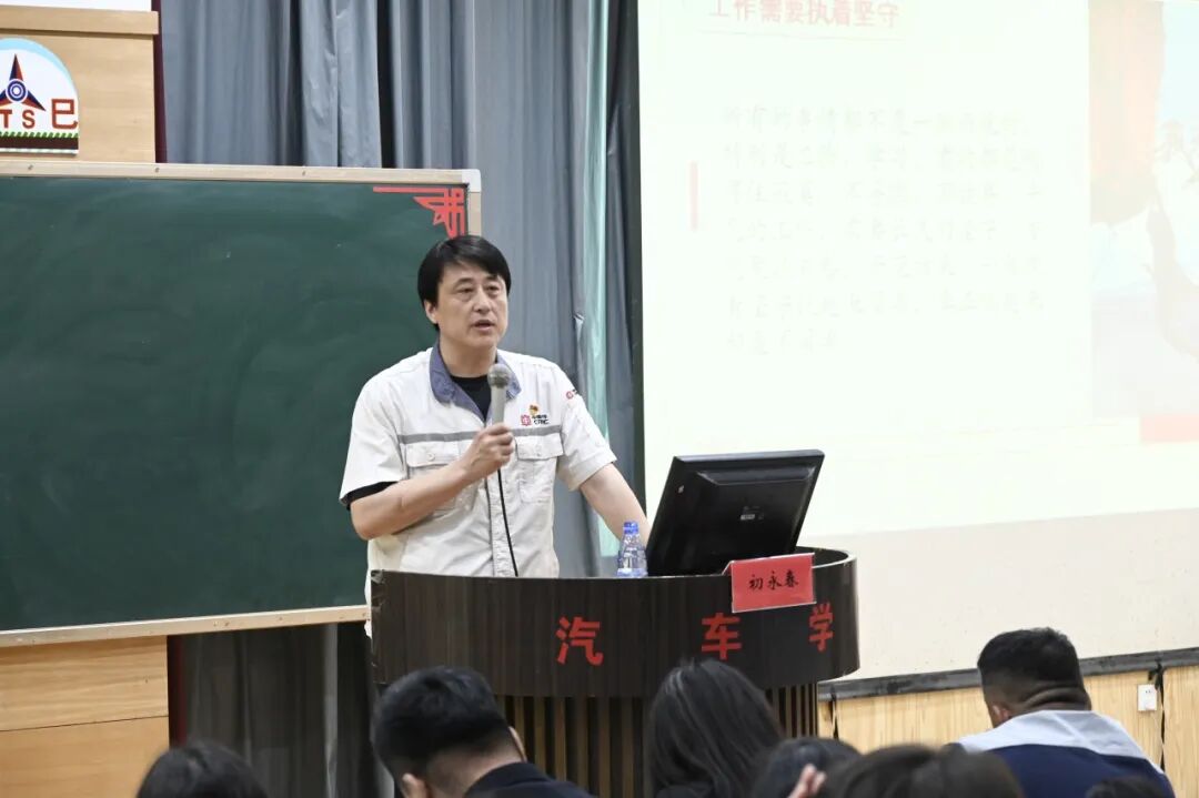 在大连汽车职业技术学院的校园里,一场别开生面、意义非凡的分享会拉开帷幕。5月21日,汽车工程学院联合大连汽车学院附属中职邀请中车大连机车研究所有限公司首席技能专家初永春老师,以“大国工匠”的身份,带着他二十余载的匠心历程,为全院师生带来了一场关于新时代工匠精神的深度启迪——“从工人到工匠,我的故事谁都能复制。”