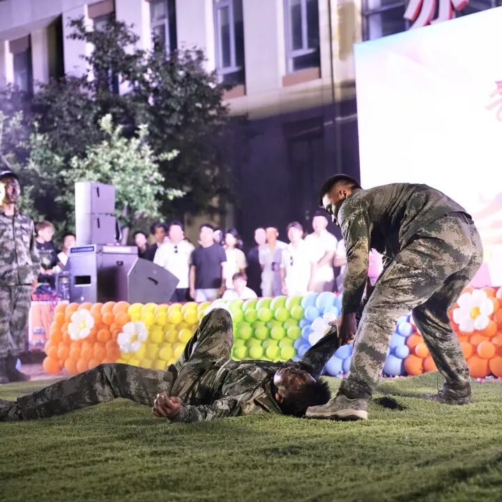 挺拔身姿彰显热血担当,凌厉招式诠释青春力量,国旗班同学展示震撼的格斗术表演,见证力量与热血的碰撞。